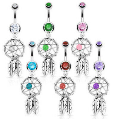 1pc Dream Catcher Woven Star Bead Feathers Gem Belly Button Ring Navel Naval