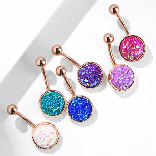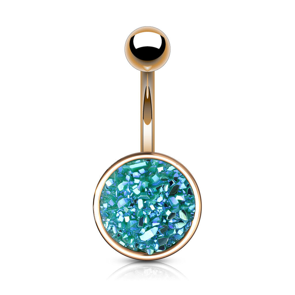 1pc Druzy Stone Style Rose Gold Plated Steel 14g Belly Ring Pierced Navel Naval
