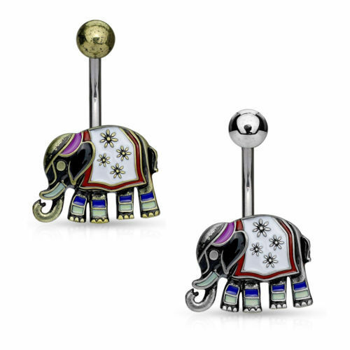 1pc Enamel Antique Plated Elephant Belly Button Ring Pierced Navel Naval