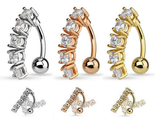 1pc Five CZ Gem Vertical Drop Belly Ring Reverse Navel Top Down Naval
