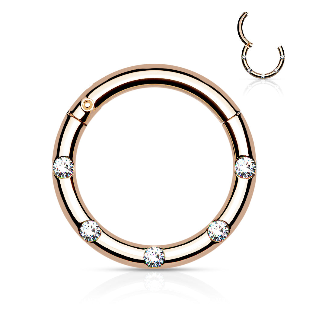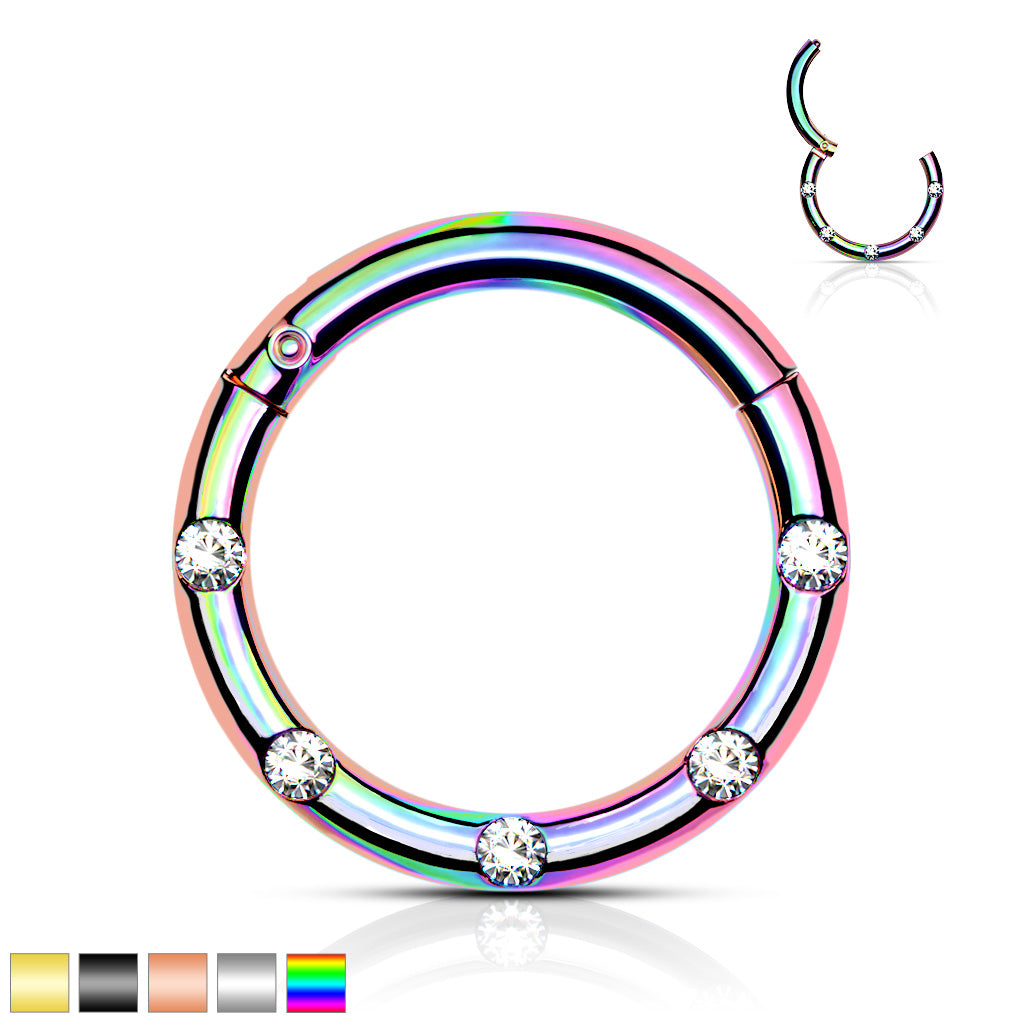 1pc Five Flush Gems Hinged Segment Ring 16g Septum Clicker 316L Surgical Steel