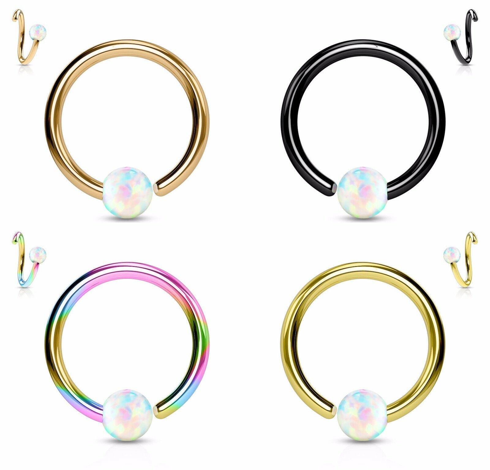 1pc Fixed Synthetic Opal Captive Bead Rings - select desired color/gauge/diameter from the drop down menu