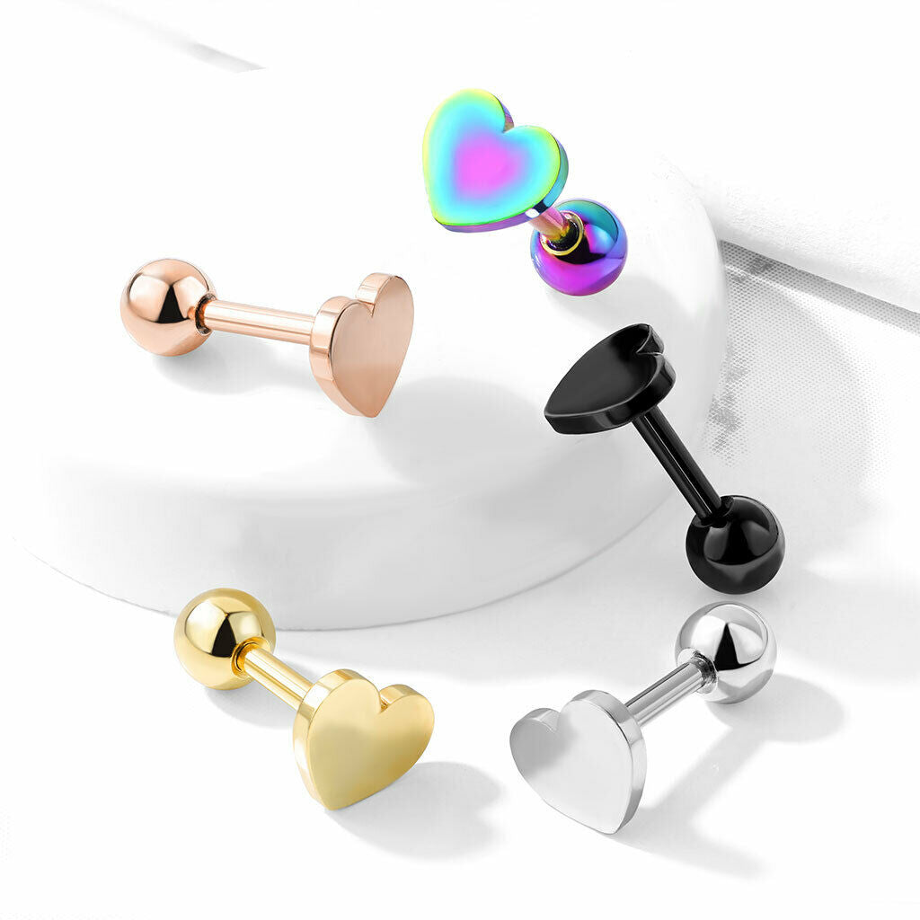 1pc Flat Heart Top Helix Tragus Cartilage Bar Stud Earring 316L Surgical Steel