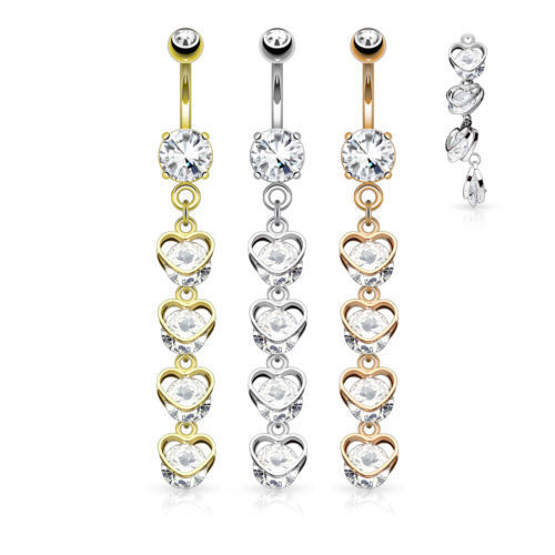 1pc Four Vertical Drop CZ Set Hearts Belly Ring - Select desired color from drop down menu above