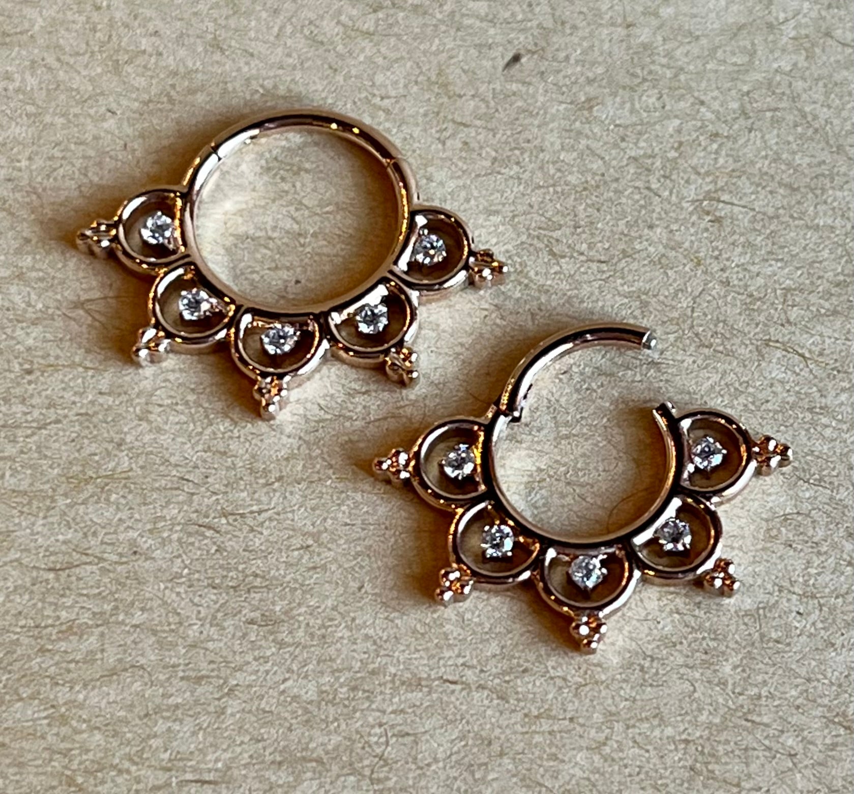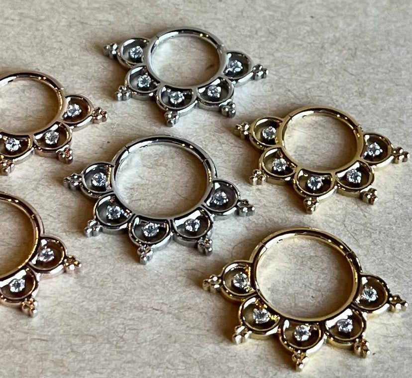 1pc Gem Center Petals Hinged Segment Ring 16g Septum Clicker Helix Orbital Daith