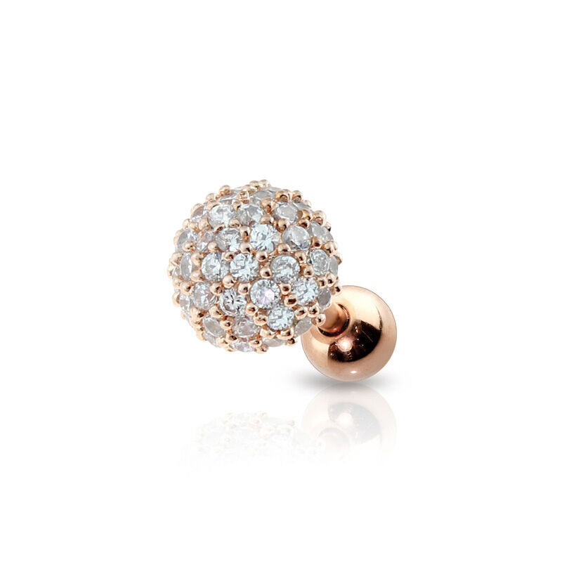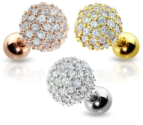 1pc Gem Paved Snowball Surgical Steel Tragus Cartilage Barbell Ring 16g 1/4"