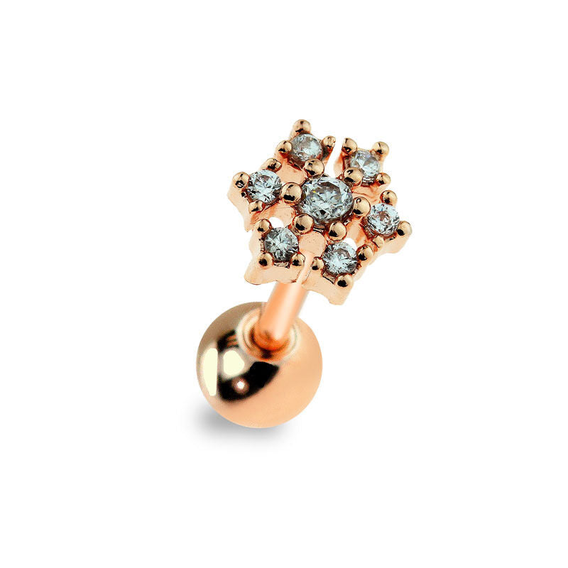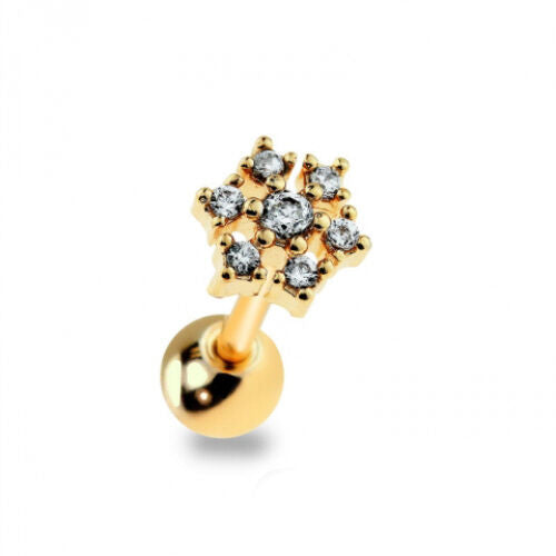 1pc Gem Snowflake Surgical Steel Tragus Helix Cartilage Barbell Ring 18g 1/4"