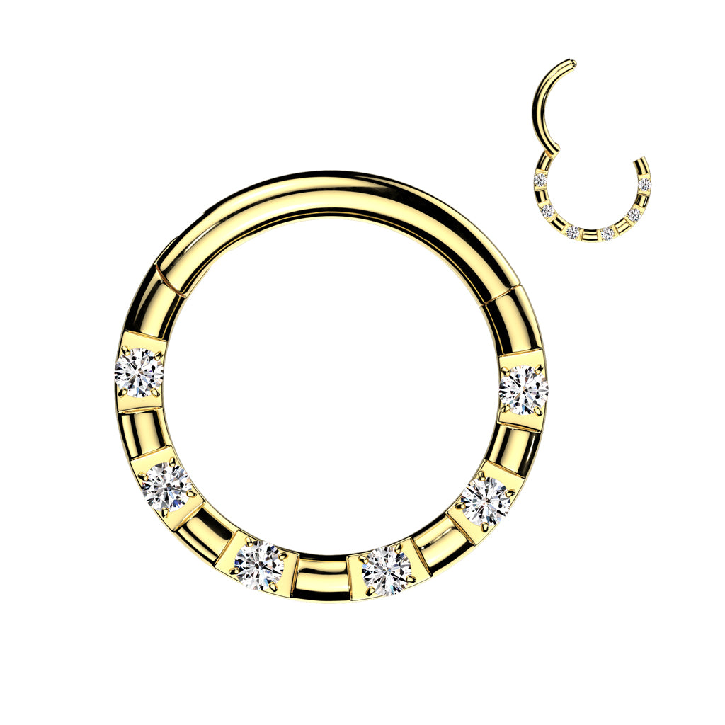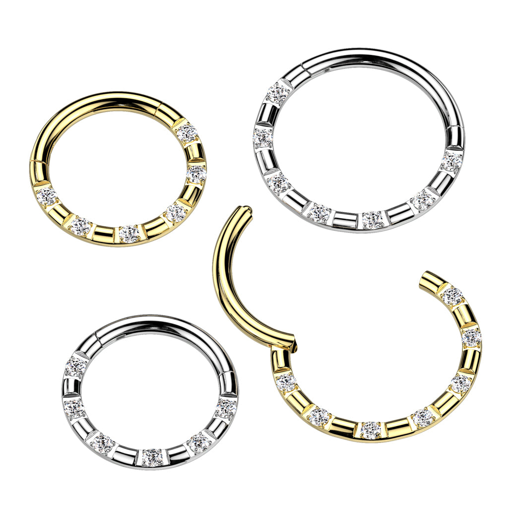 1pc Hinged Segment Ring 6 CNC Gem Front 16g Helix Septum Clicker Surgical Steel