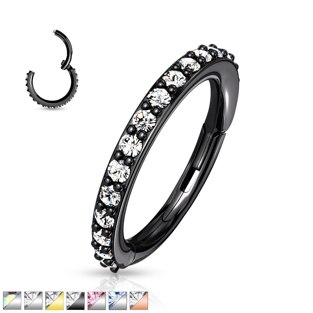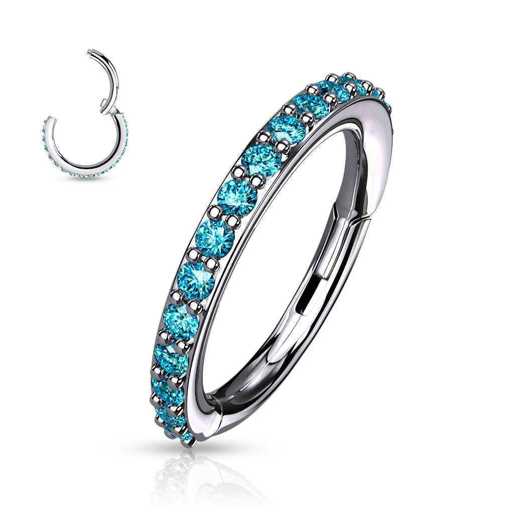 High Quality Precision 316L Surgical Steel Hinged Segment Ring w/ CNC Set CZ Gems - select desired color/gauge/internal diameter from the drop down menu