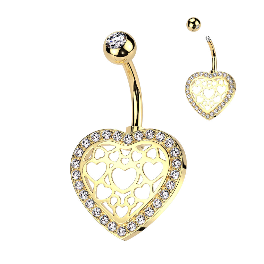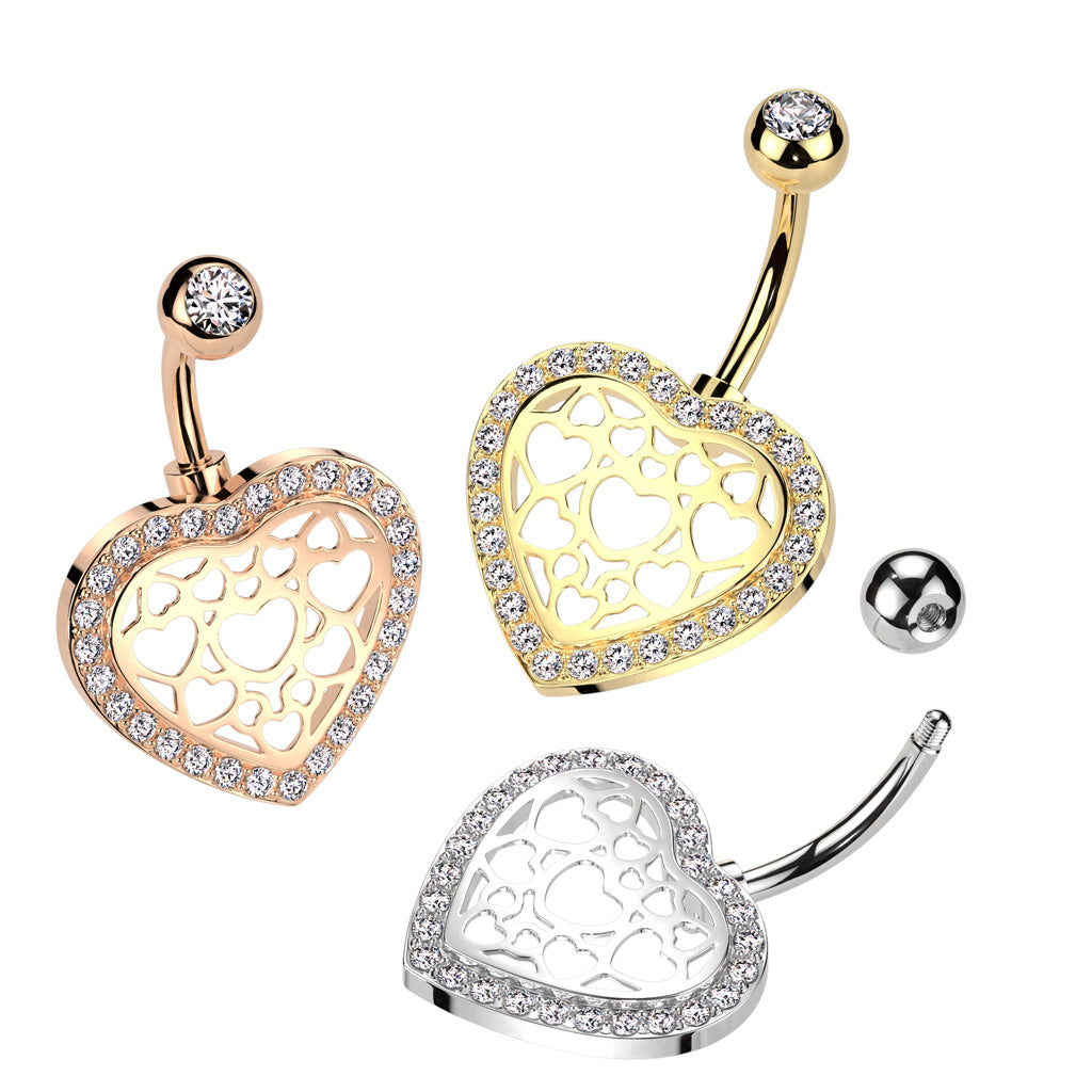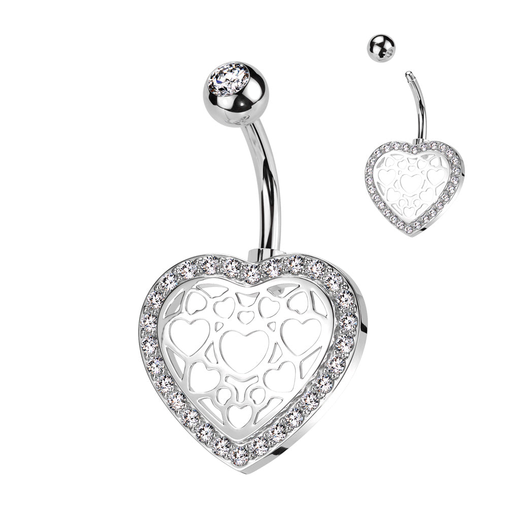 1pc Hollow Heart Pattern Center CZ Gem Belly Button Ring Pierced Navel Naval