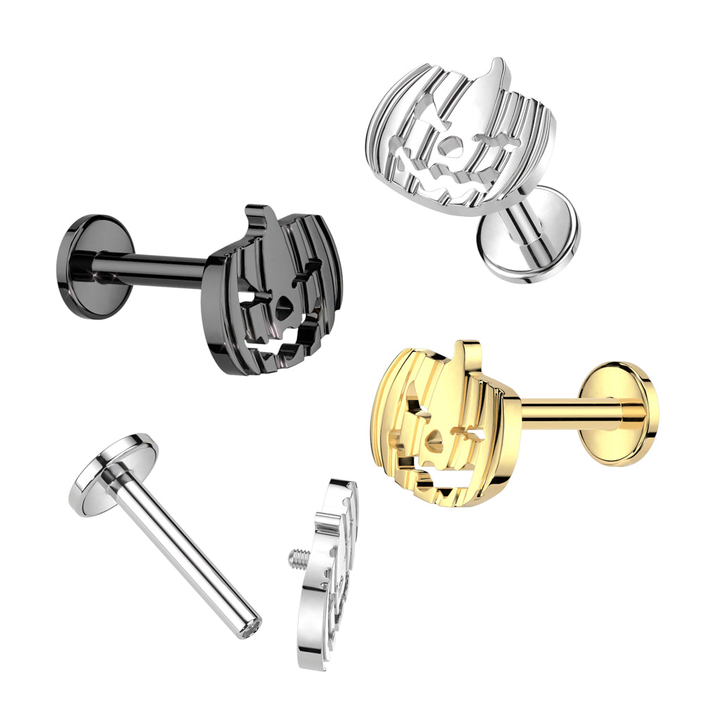 1pc Implant Grade Titanium Jack-O-Lantern Labret Pumpkin Cartilage Stud Ring