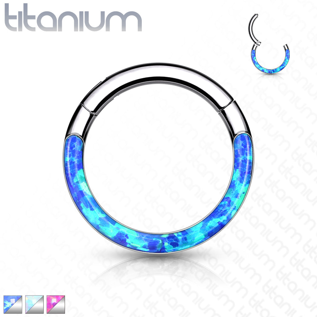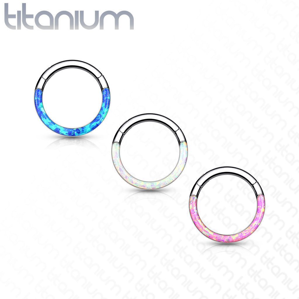 1pc Implant Grade Titanium Opal Front Edge Hinged Segment Ring Daith Hoop Septum Clicker