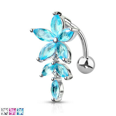 1pc Marquise CZ Gem Flower & Vine Belly Ring Top Drop Reverse Naval Navel