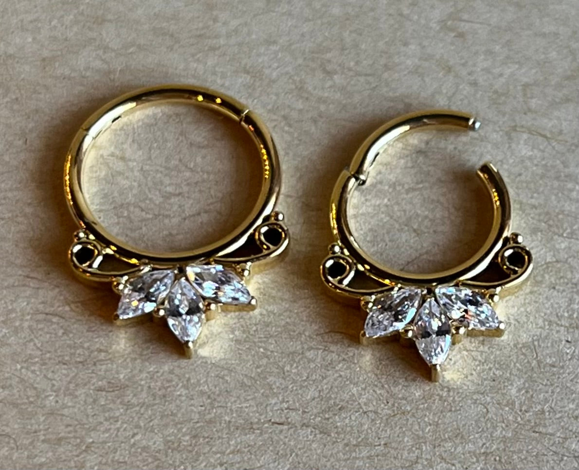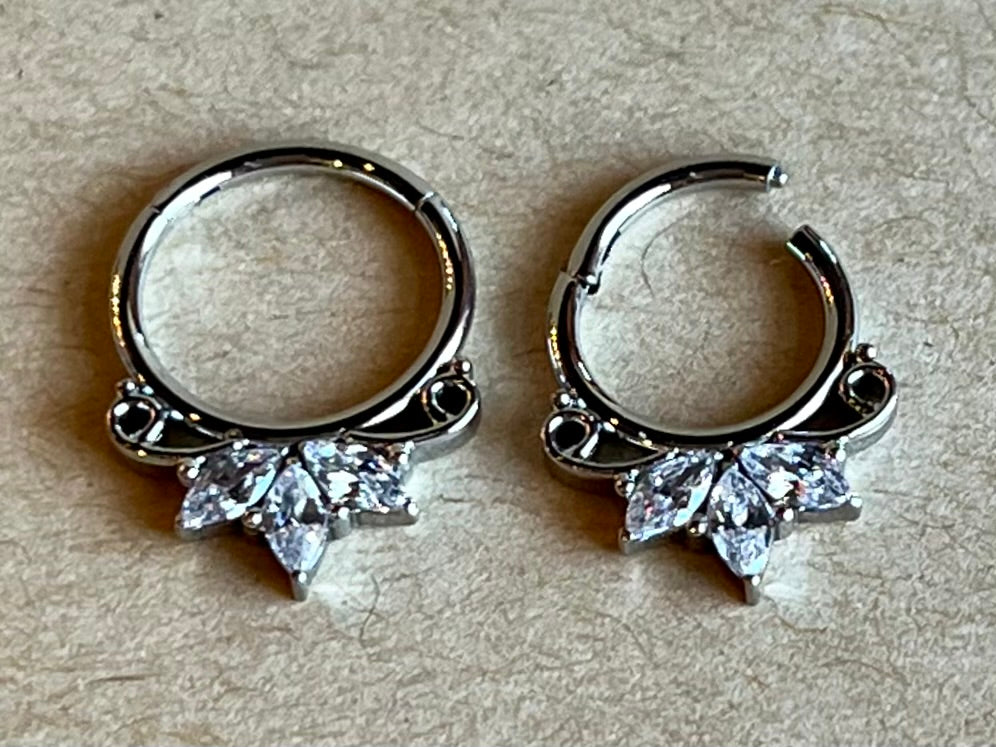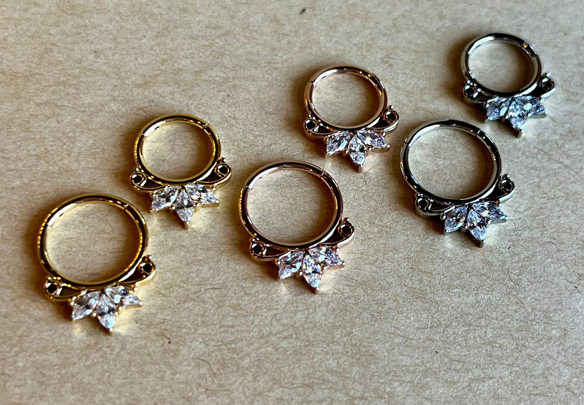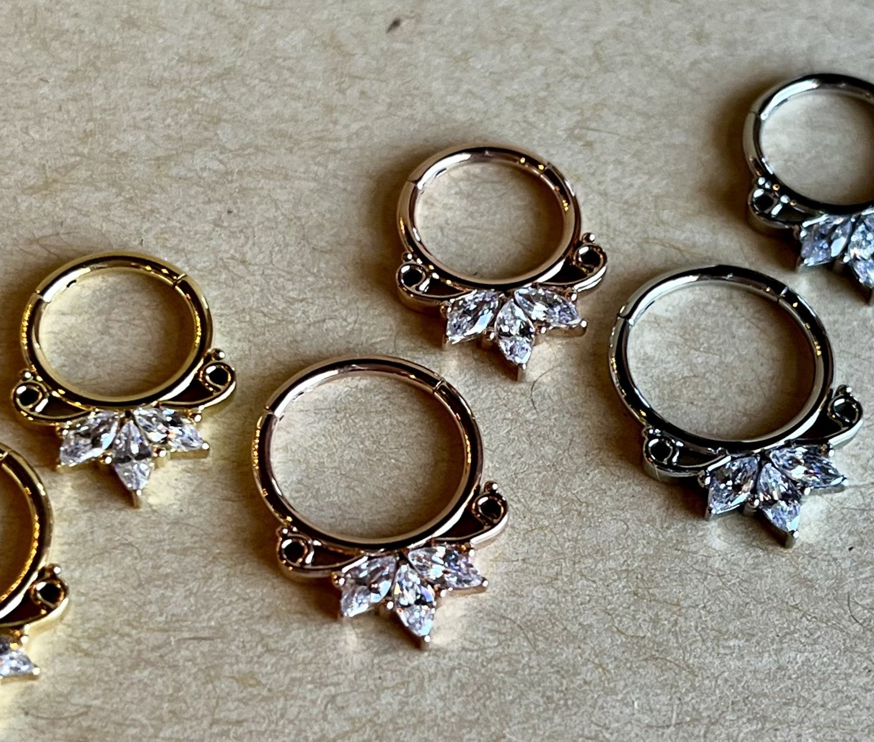 1pc Marquise Gem Fan Hinged Segment Ring 16g Septum Clicker Helix Orbital Daith