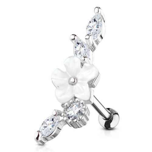 1pc Mother of Pearl Flower Gem Vine Tragus Ring 16g 1/4"
