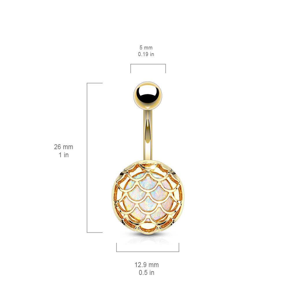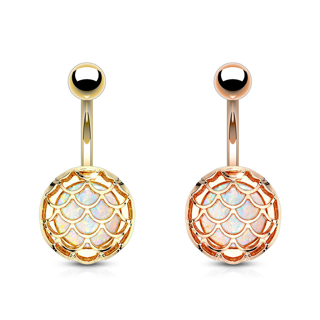 1pc Opal Glitter Encased Casted Fish Scale 14g Belly Ring Pierced Navel Naval