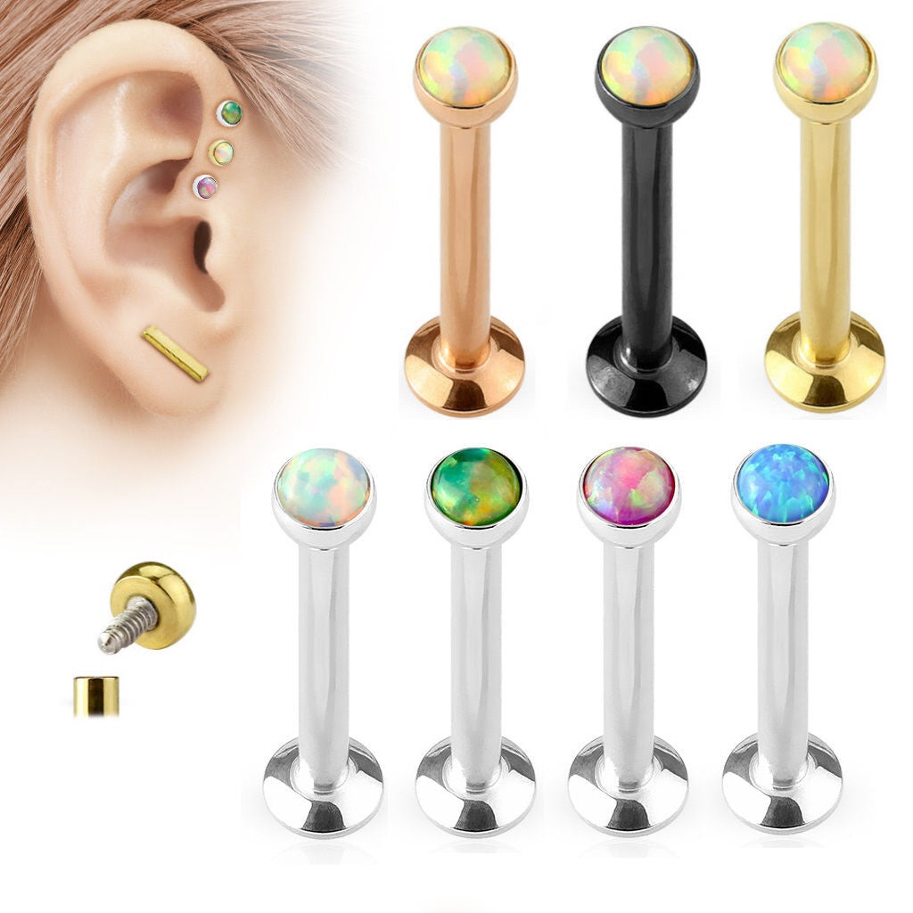 1pc Opal Set Surgical Steel Internally Threaded Labret