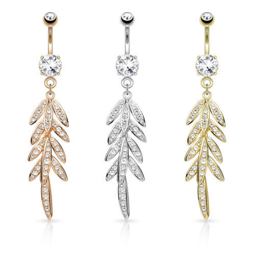 1pc Paved CZ Leaves Belly Ring Leaf Navel Naval