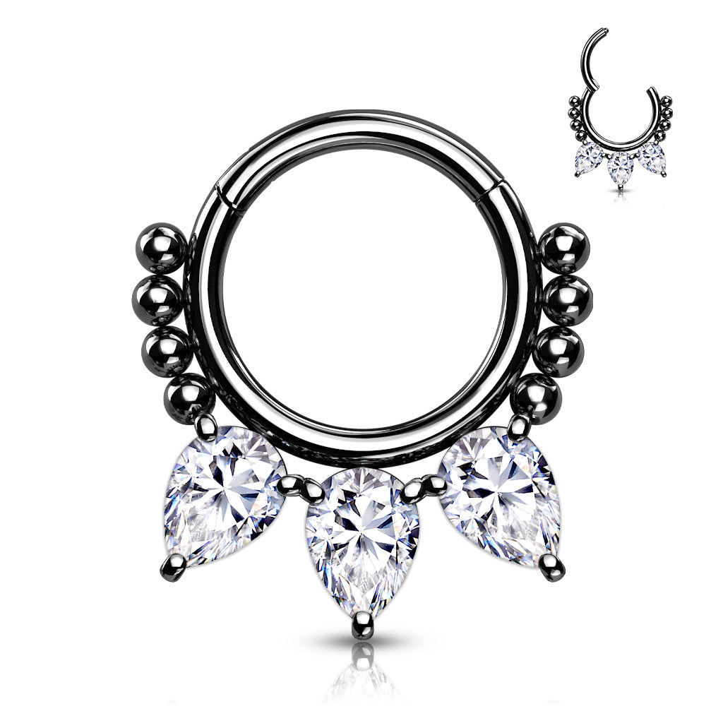 1pc Pear CZ Gems & Beads Hinged Segment Ring 16g Septum Clicker Helix Cartilage
