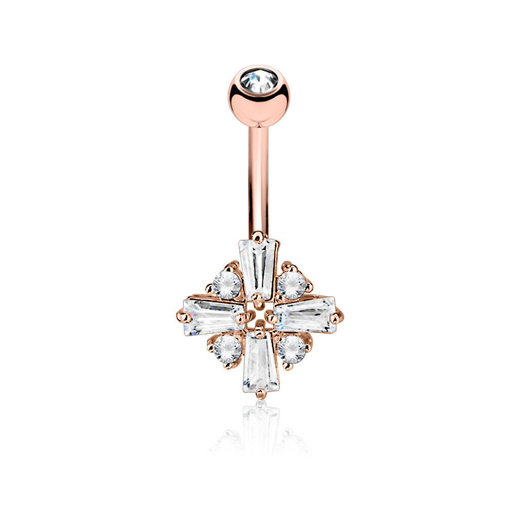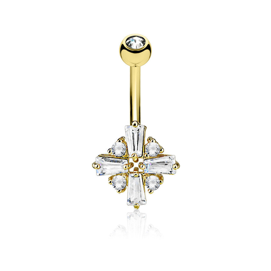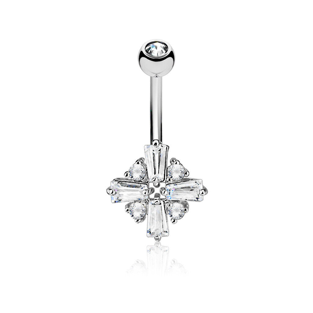 1pc Princess Cut CZ Gem Cross Surgical Steel Belly Ring Navel Naval