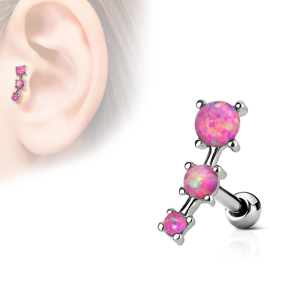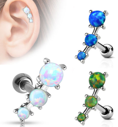 1pc Prong Set 3 Opals Tragus Ring 16g 1/4"