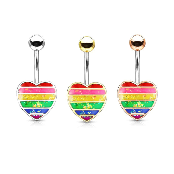 Rainbow Opal Glitter Filled Heart Belly Ring - Select desired color from the drop down menu above