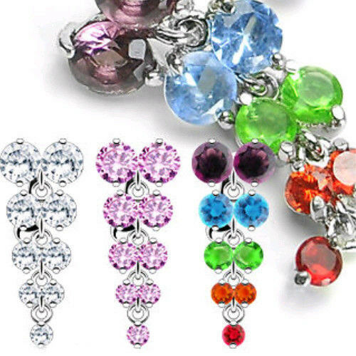 Reverse Chandelier Press-Fit Multi-Gem Belly Ring - Select color from drop down menu above