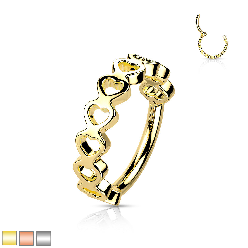 1pc Side Facing Hearts Hinged Segment Ring Surgical Steel Hoop Helix Daith