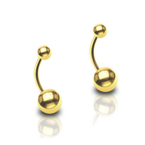 Simple Gold Double Ball Belly Ring Ion Plated over 316L Surgical Steel - Select your gauge, length & ball size from the drop down menu above