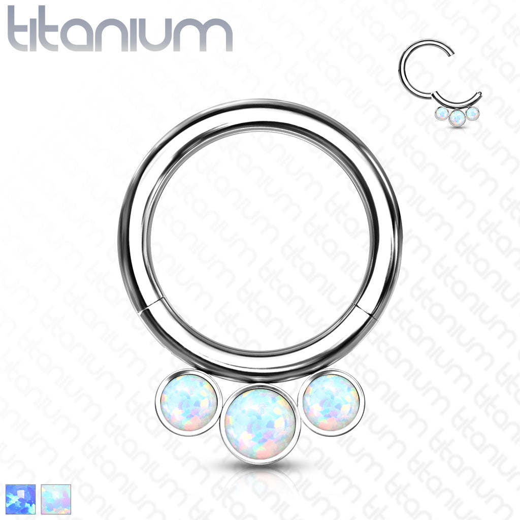 1pc Solid Titanium 3 Bezel Set Opals Hinged Segment Ring Helix Septum Clicker