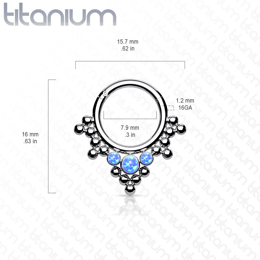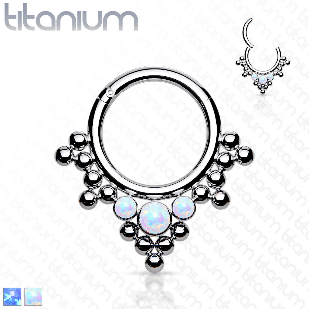 1pc Solid Titanium 3 Opals & Beads Hinged Segment Ring Helix Septum Clicker