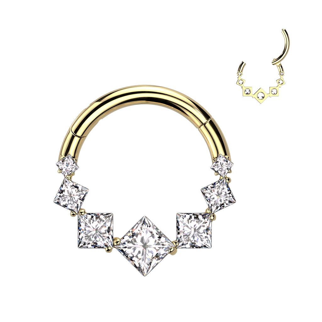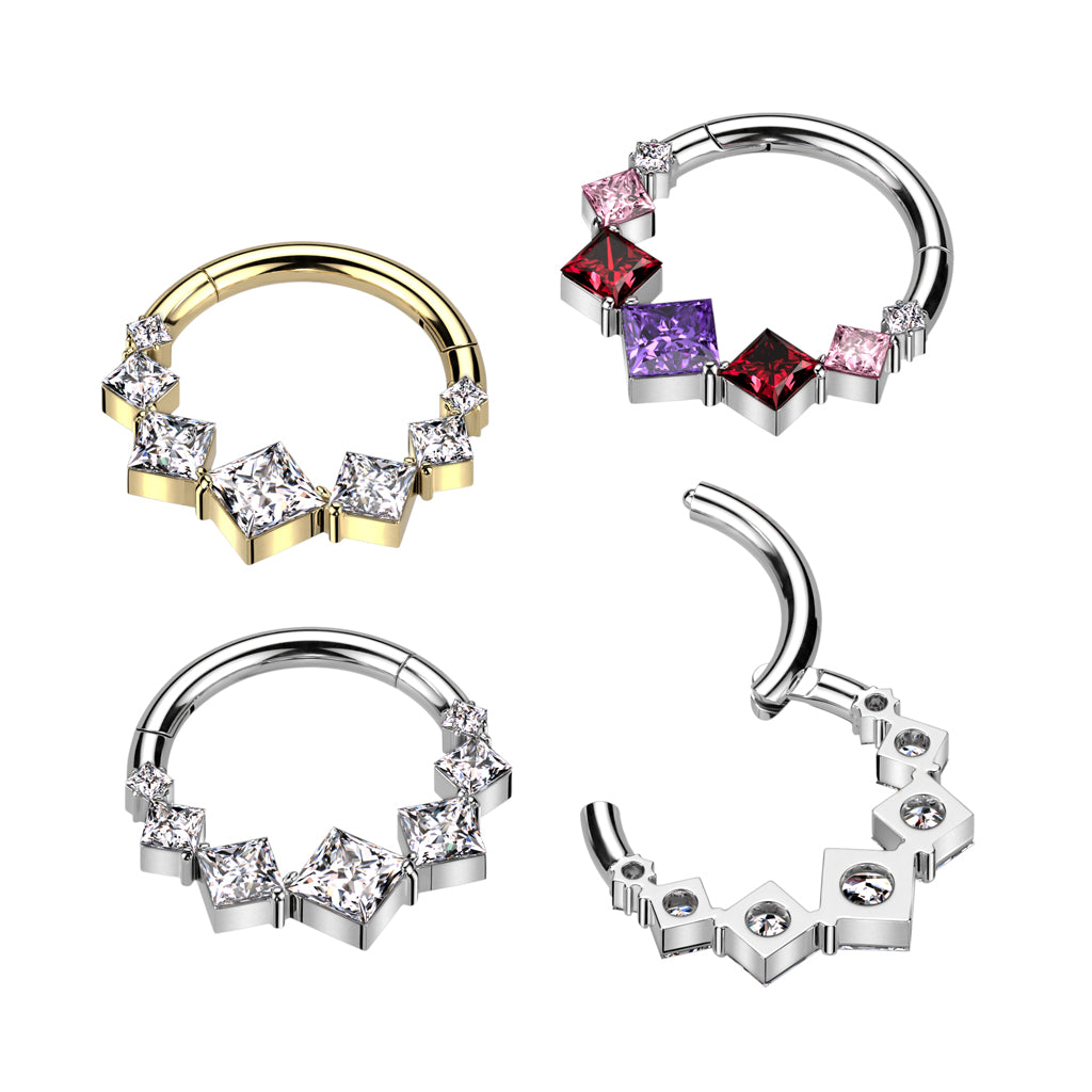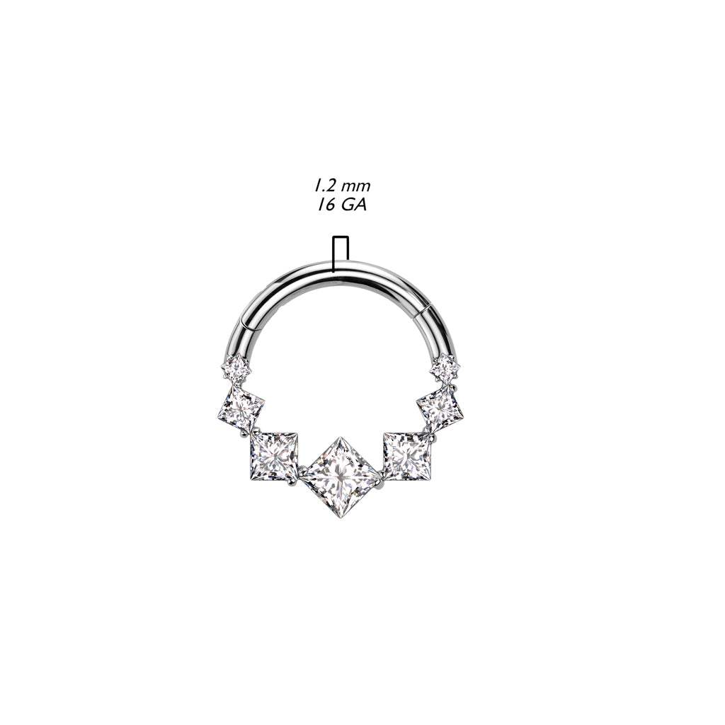 1pc Solid Titanium 7 Square CZ Gems Hinged Segment Ring Helix Septum Clicker