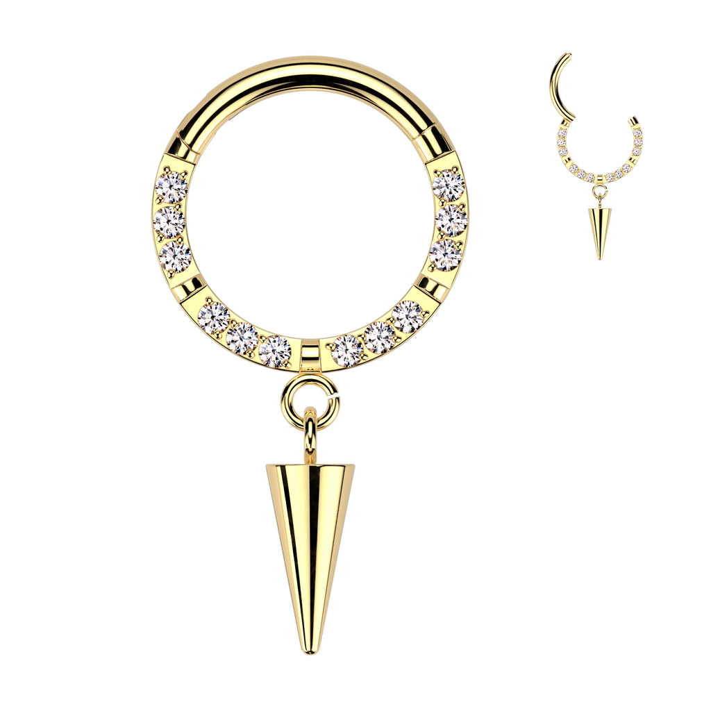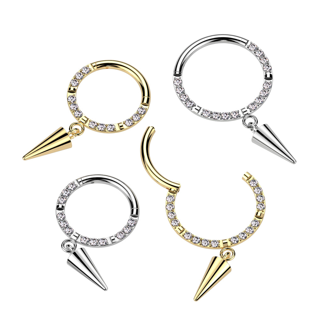 CNC Gem Front w/ Spike Dangle Design Hinged Segment or Cartilage Ring - select desired color/size from the drop down menu