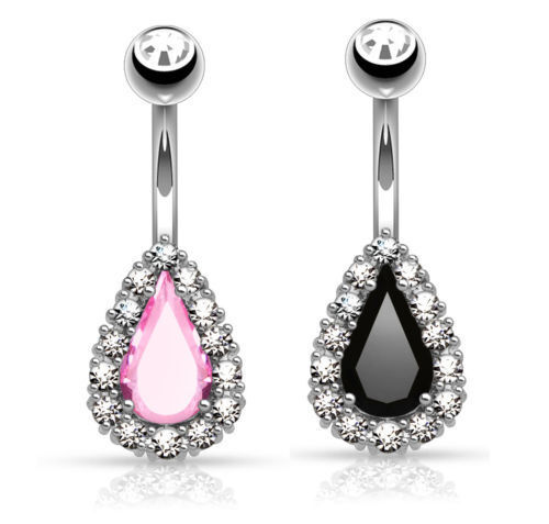 Tear Drop CZ Paved Prong Set Belly Rings - Select desired color from drop down menu above
