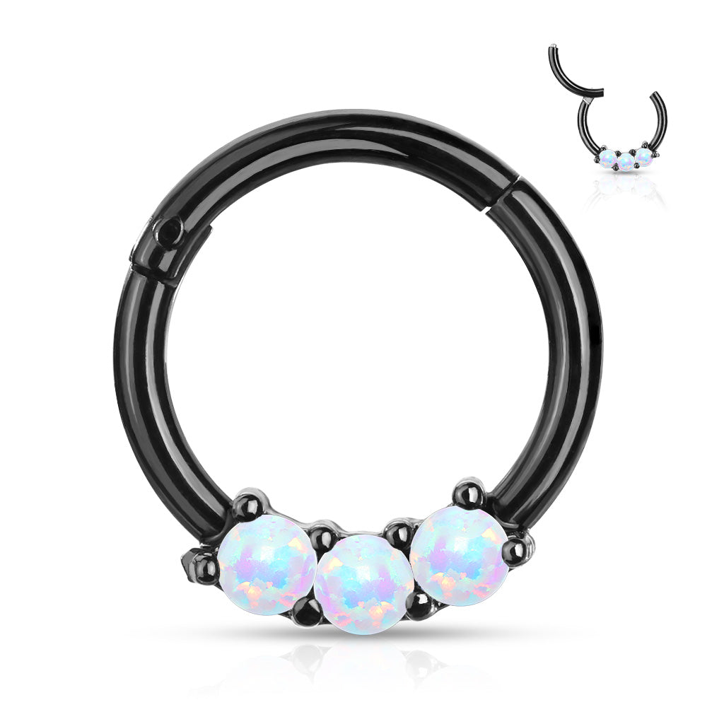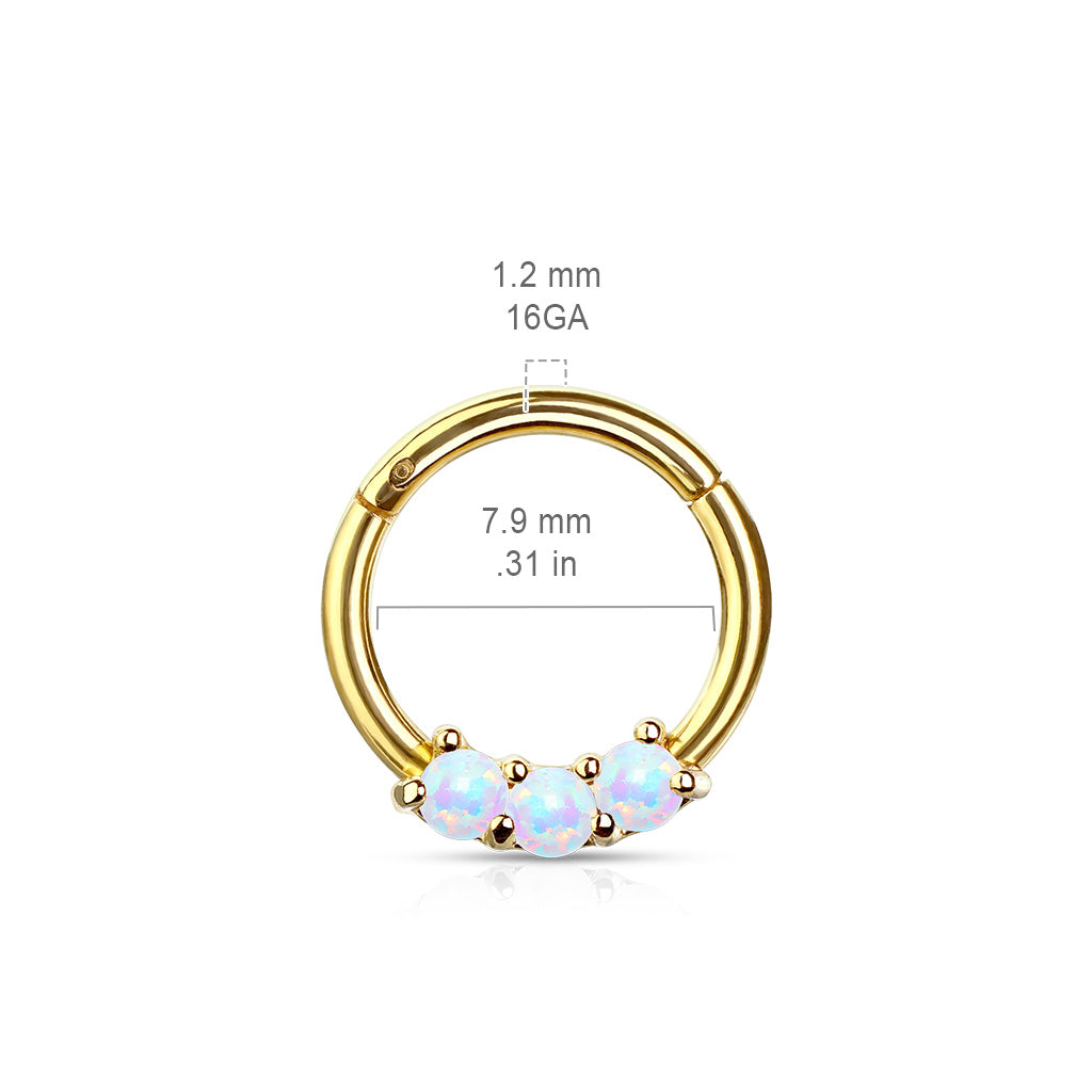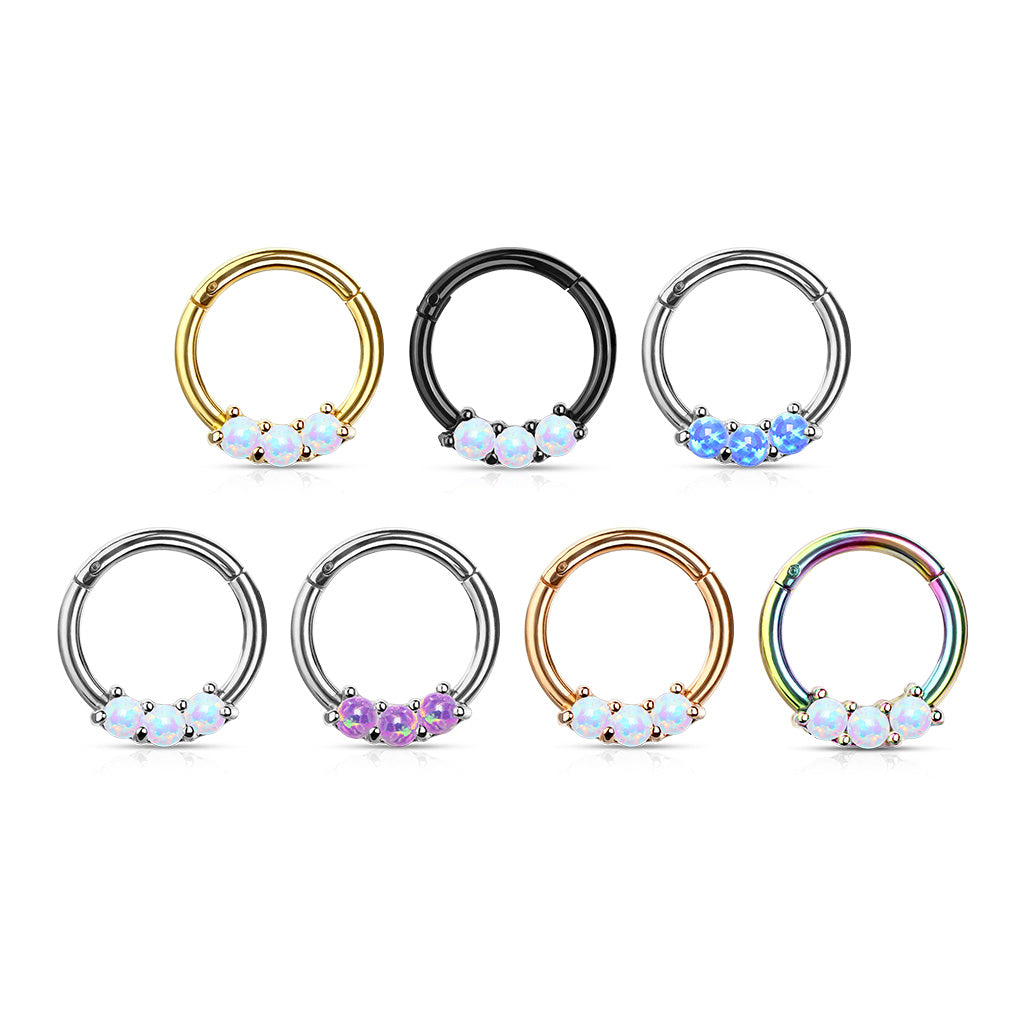 1pc Three Opals Hinged Segment Ring Septum Clicker 316L Surgical Steel