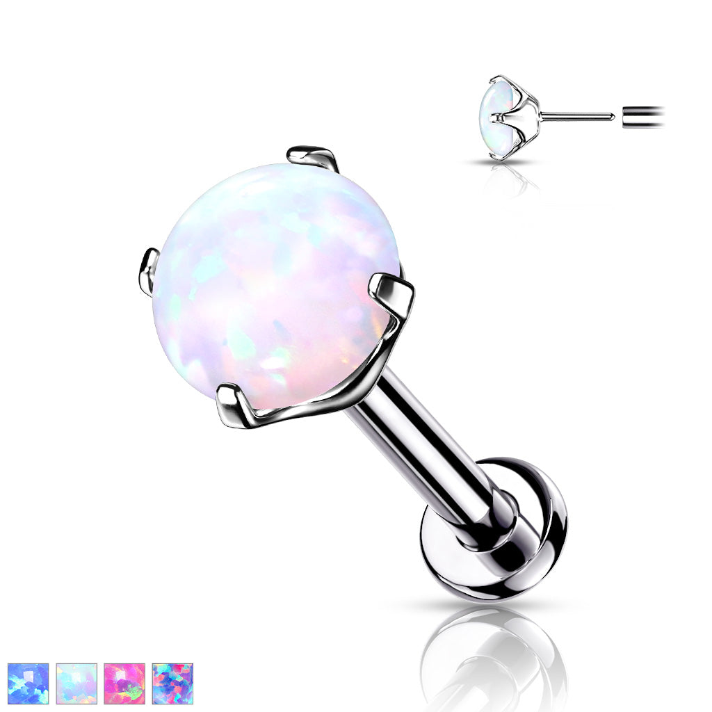 One Push-In Prong Set Opal Labret Stud - select desired color, gauge, wearable length and ball diameter from the drop down menus
