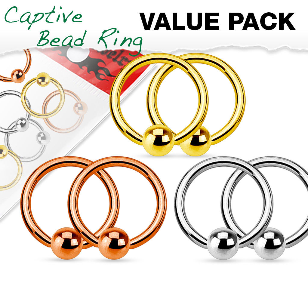 3 PAIR Value Pack Steel, Gold, Rose Gold Captive Bead Rings