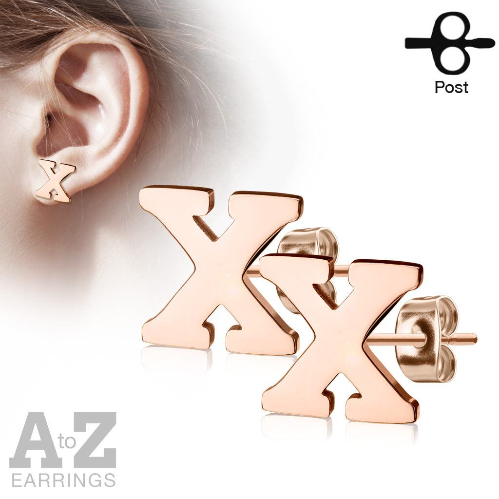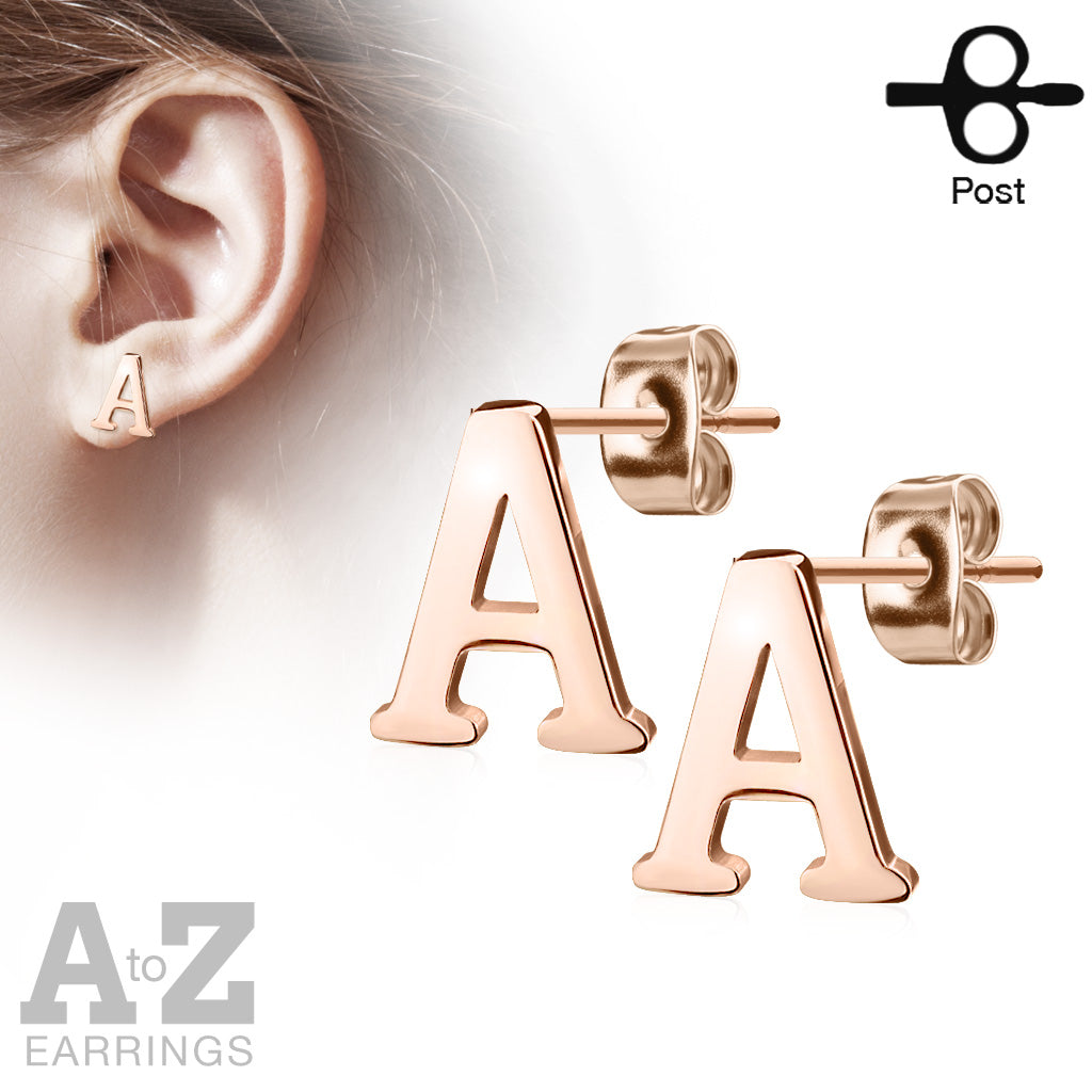 Alphabet Initial Earrings Rose Gold IP 316L Stainless Steel
