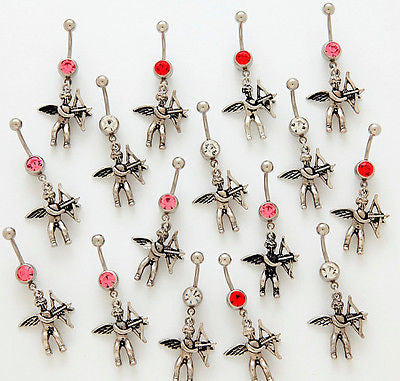 This is a closeout lot consisting of 10pcs of clear gem cupid belly rings