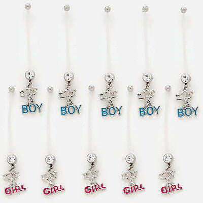 10pcs "It's A Boy/Girl" Pregnancy Navel Rings 14g Belly Naval PTFE