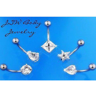 5pcs Shaped CZ Gem Solitaire 14g Belly Navel Rings