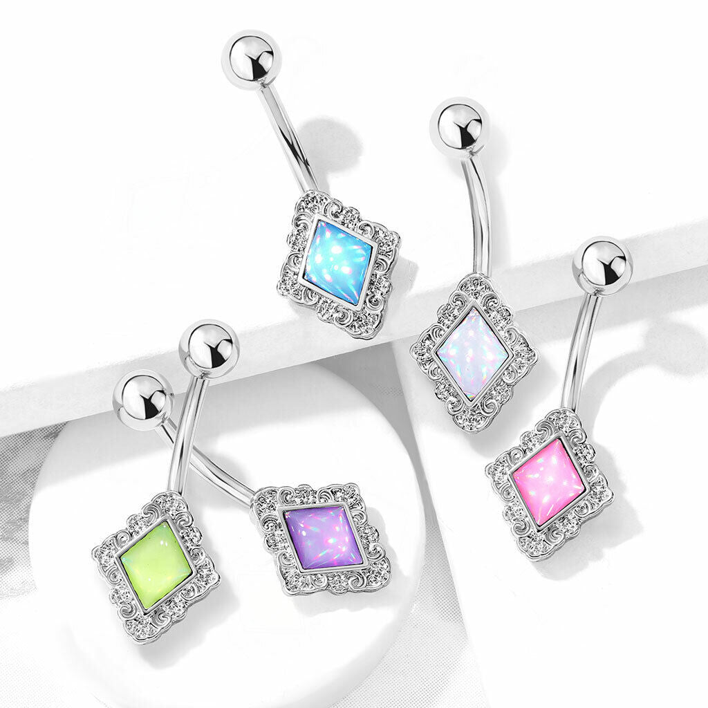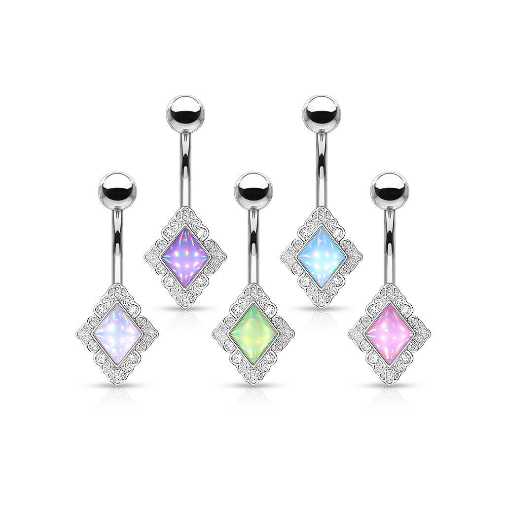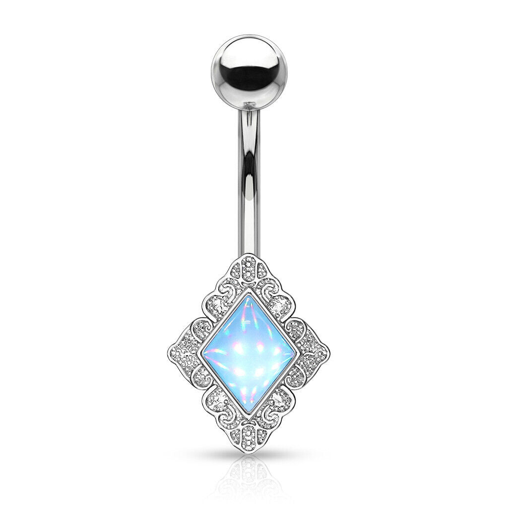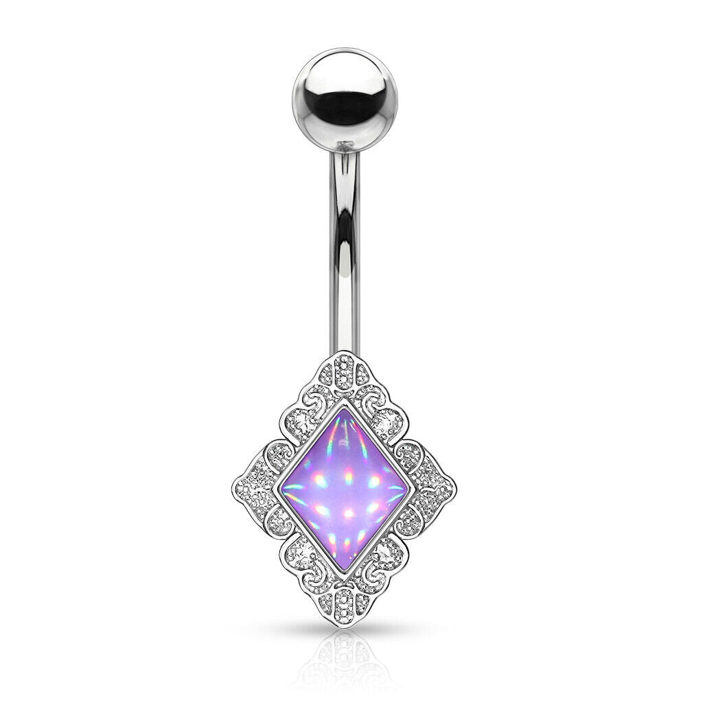 Diamond-Shaped Filigree Edge Illuminating Stone Belly Ring Naval Piercing Navel