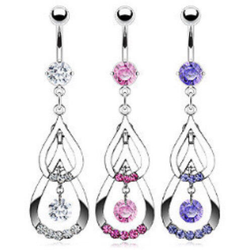 Double Teardrop CZ Gem Dangle Belly Ring - Select your color from the drop down menu above