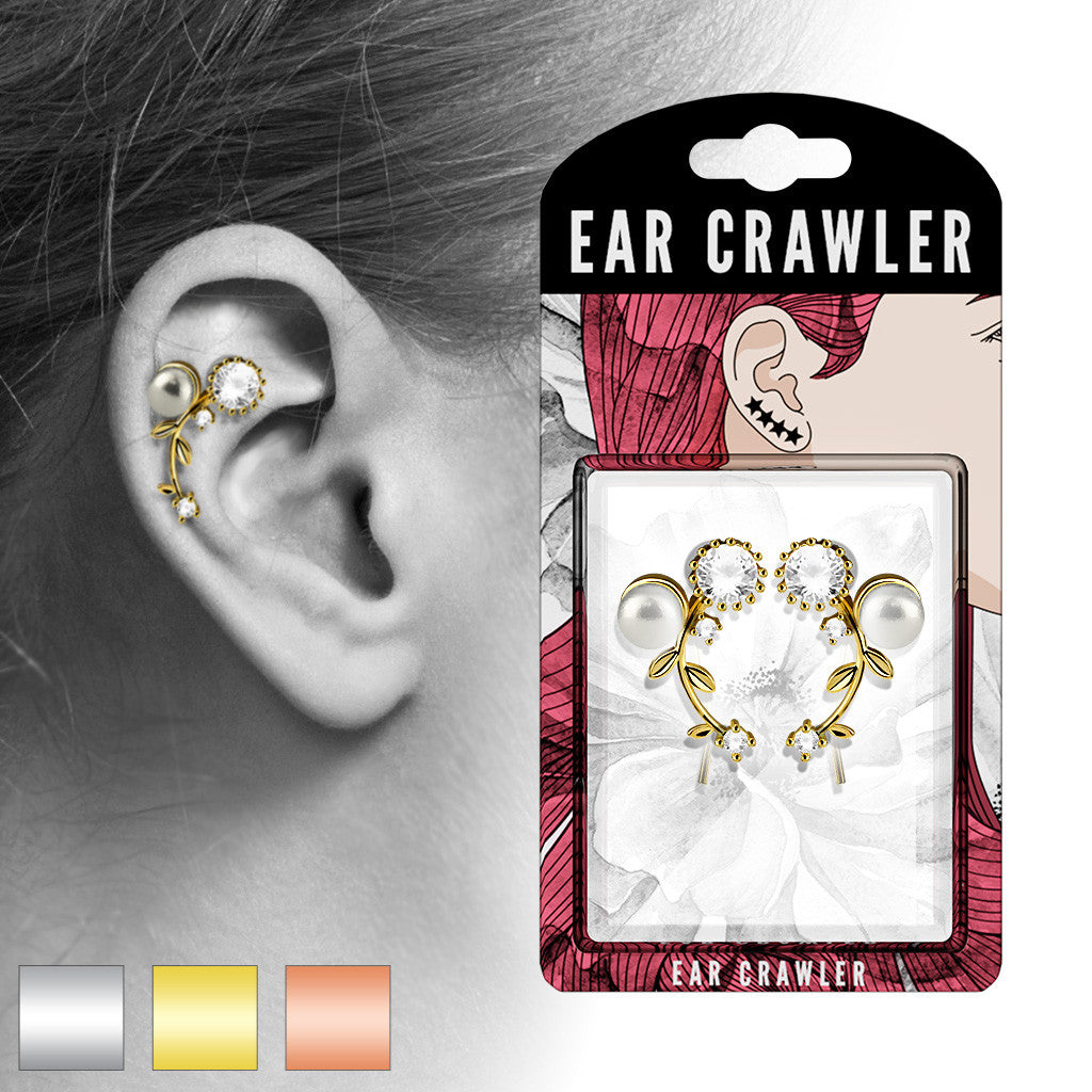 Ear Crawler Earrings Retail Peg Pack - CZ & Pearl Set Vines