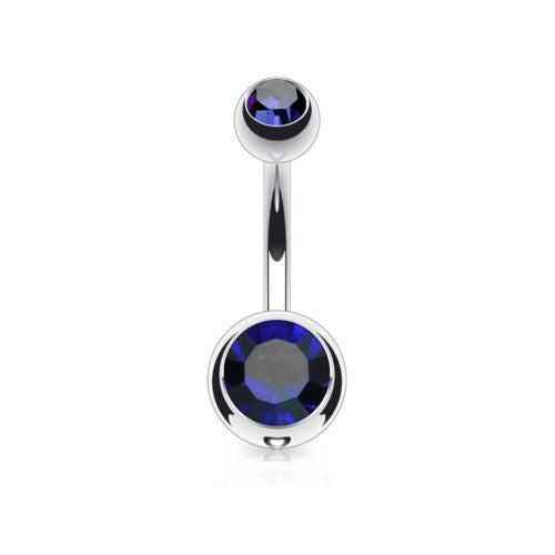 Internally Threaded Steel Double CZ Gem Ball Belly Ring Pierced Navel Naval