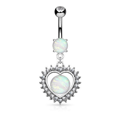 Opal Glitter Center Crystal Heart Dangle Belly Button Ring Navel Naval