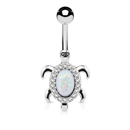 Opal Glitter Center Crystal Paved Turtle Belly Button Ring Navel Naval
