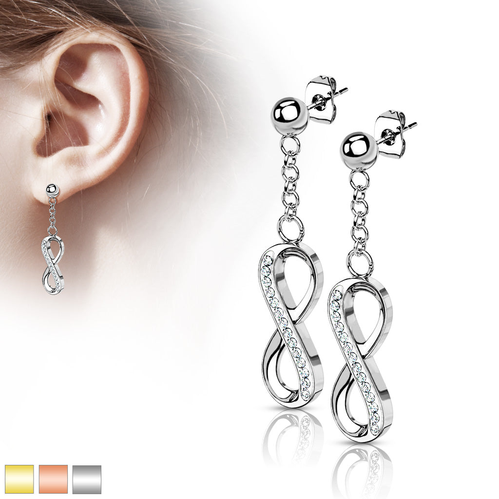 One Pair of 20g Paved Gem Infinity Dangle Earrings