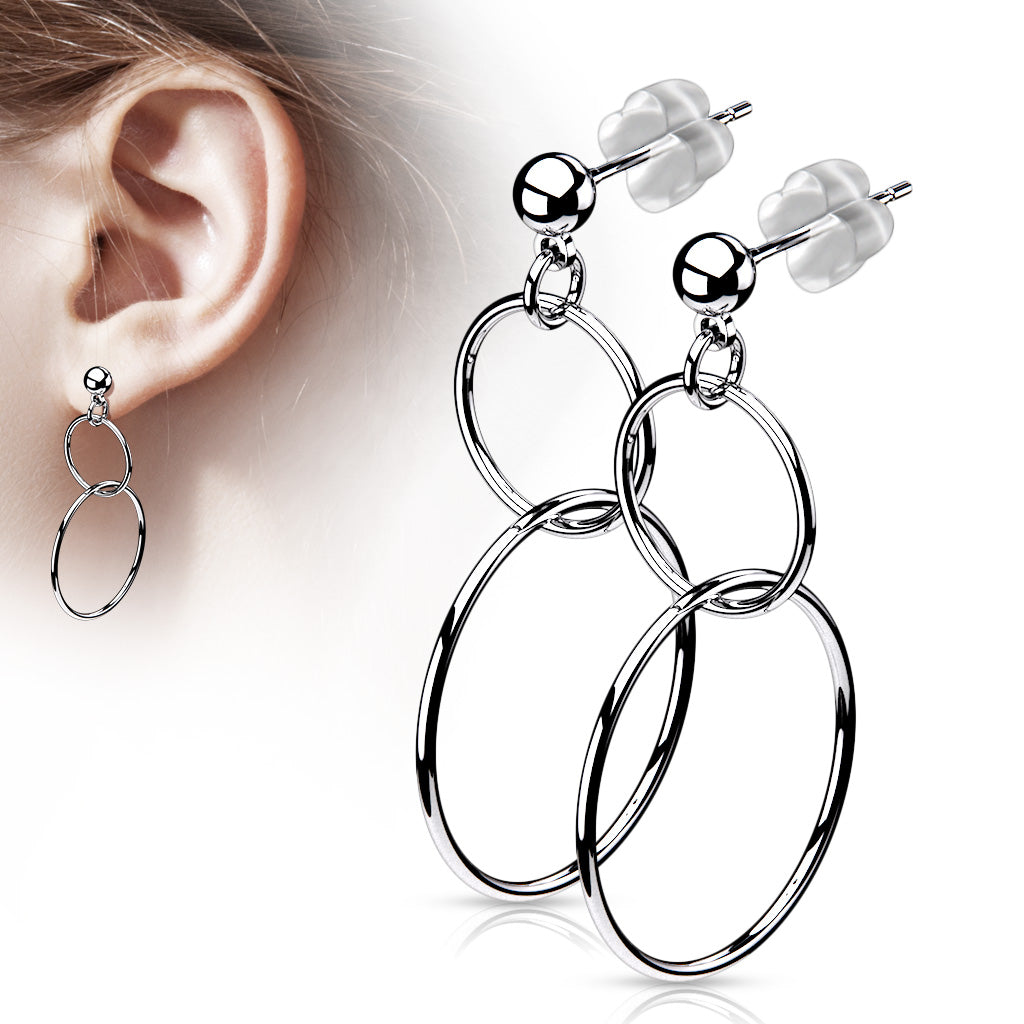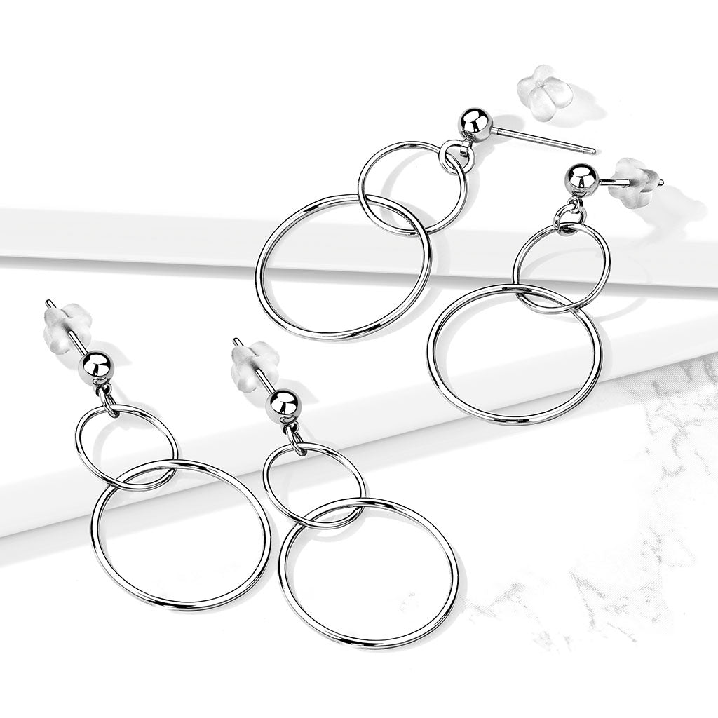 PAIR Ball Stud Earrings w/Double Hoop Dangles 316L Surgical Steel 20g