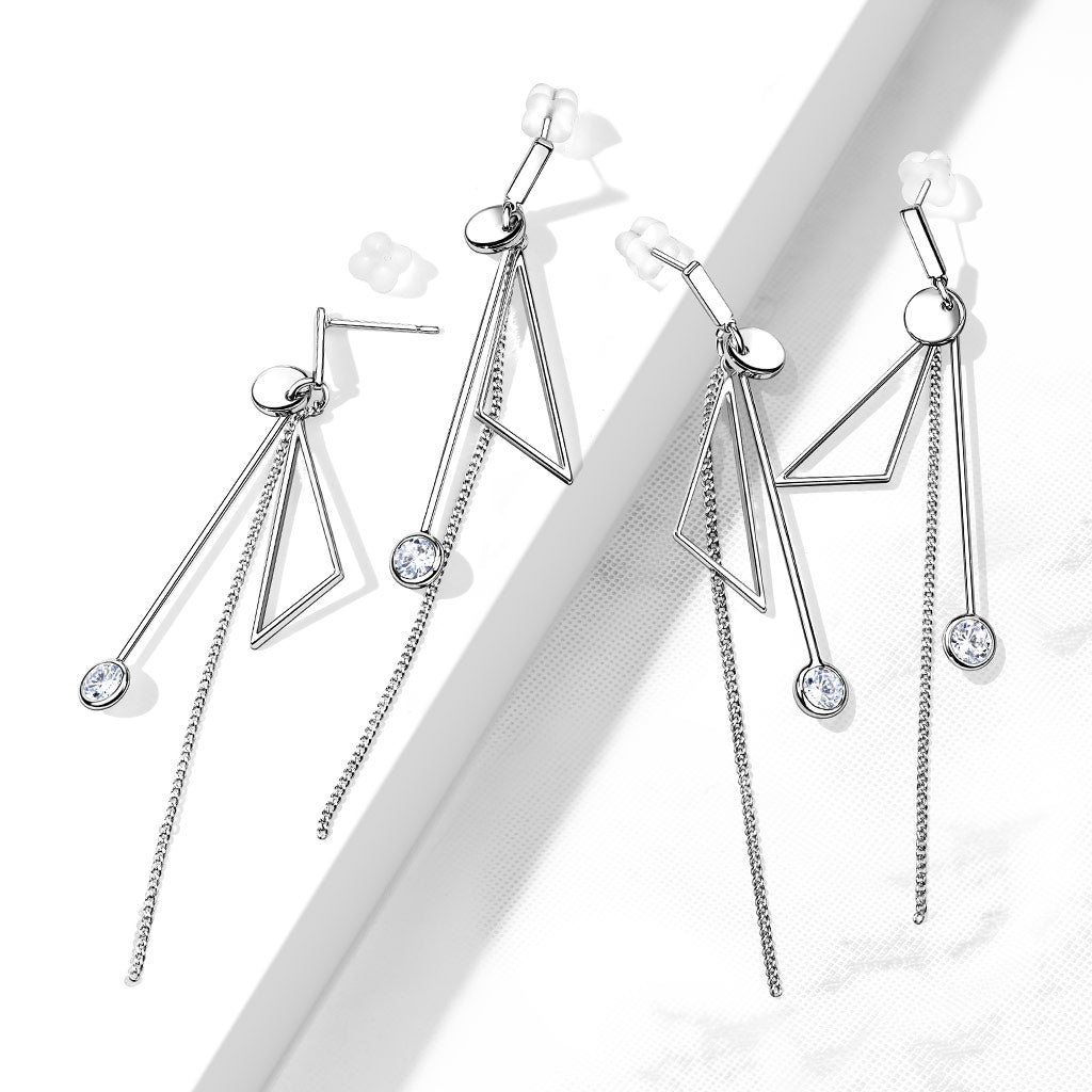 PAIR Chain Stud Earrings w/ Abstract Dangles 316L Surgical Steel 20g